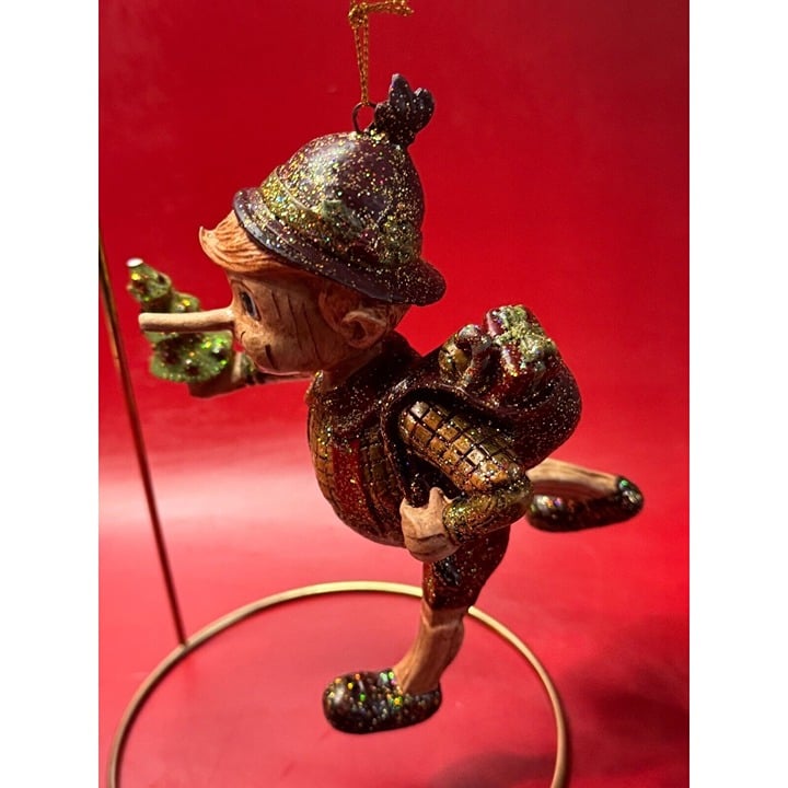 This exquisite Mark Roberts Pinocchio ornament adds a touch of whimsy to holiday decor. With shimmering glitter, it's an elegant collectible piece, showcasing intricate craftsmanship and attention to detail. Ideal for collectors seeking unique decorations, its rarity enhances its value.