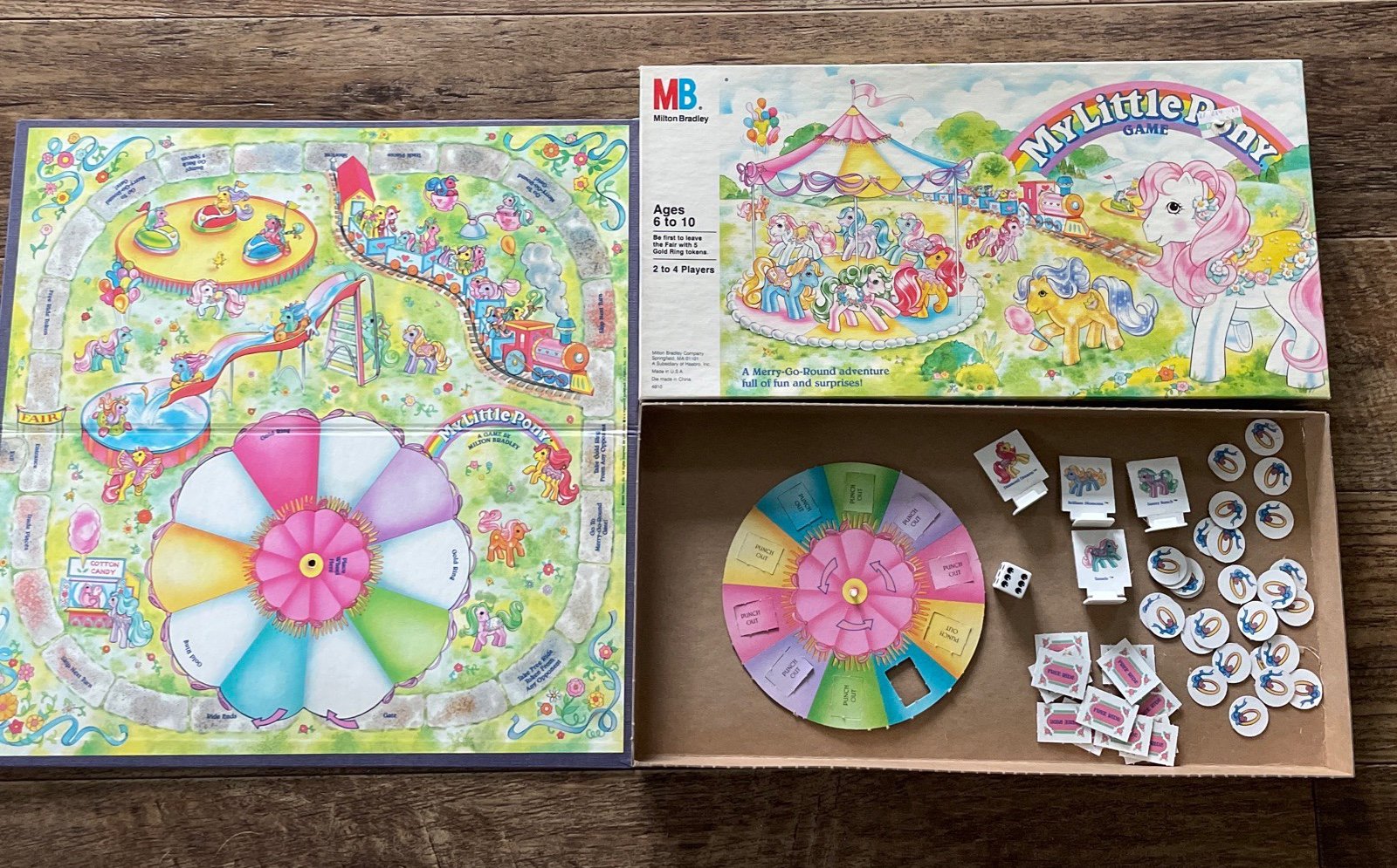 Vintage Milton Bradley, my little pony game in wonderful condition. Looks like it was never played. Some of the pieces pieces are not even punched out. Smoke free home. I ship daily and fast.